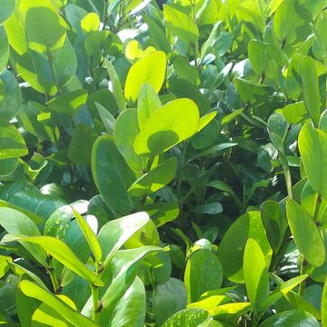 Commonly known as akapuka or shining broadleaf. Has a stunning vibrant green colour and large oval leaves which are extremely thick and glossy. Responds to being trimmed and hence is great for creating a dense hedge. Prefers full sun to semi-shade. Tolerates coastal conditions. Ideal for creating lush tropical effects. Approximate size 5m x 3m.