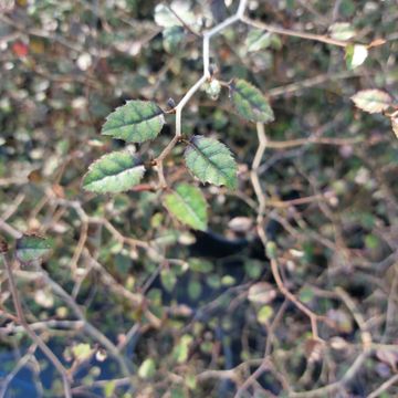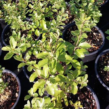 A hardy native shrub perfect for a hedge with chocolate bronze foliage, frosted in silver on the underside. Small star-like yellow flowers followed by small red berries. Mature height approx. 2-3m, however easily pruned to desired size and shape.