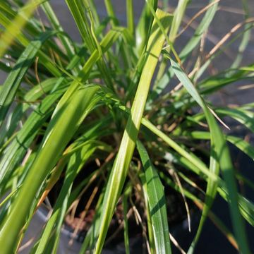 Tussock forming grass of up to 4m when in flower. Produces drooping, light golden-yellow flowerheads from September to January. Fast growing. Grows on a wide range of sites but preforms best in wet soils. Approx. height 2m x 3m.