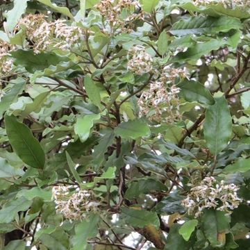 Evergreen shrub of around 5m with compact bushy growth, leaves are glossy with deep mahogany new foliage. Hardy in coastal conditions, however tender to heavy frosts.